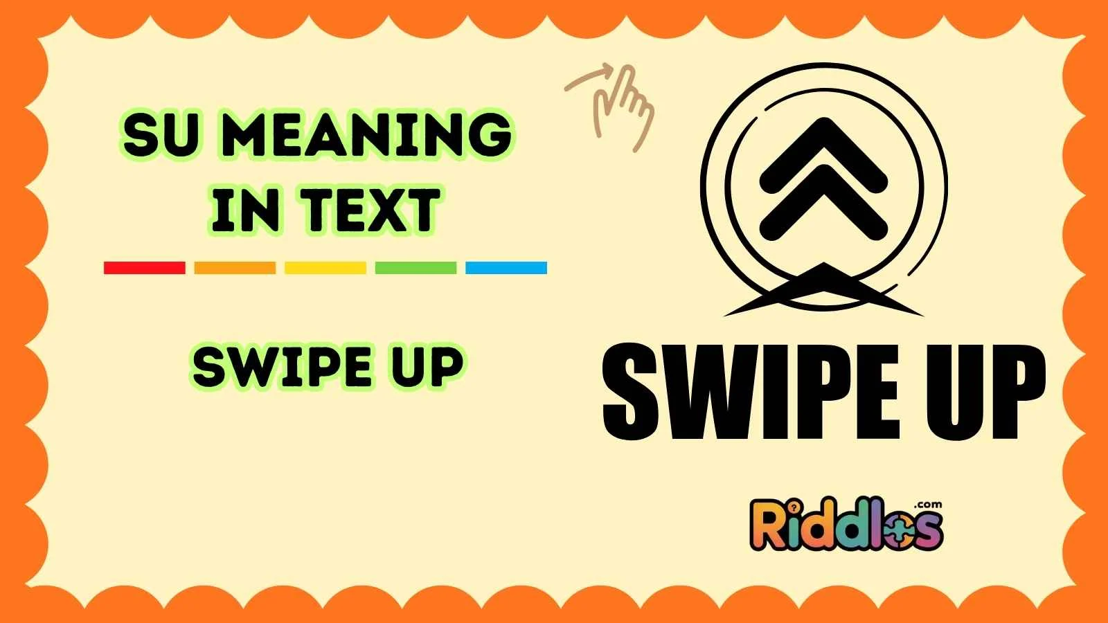 The most common SU meaning in text is “Swipe Up.” This phrase exploded through Snapchat and Instagram Stories where creators nudged viewers to swipe upward for a link, reply, or action. Over time it drifted into normal texting and DM culture.