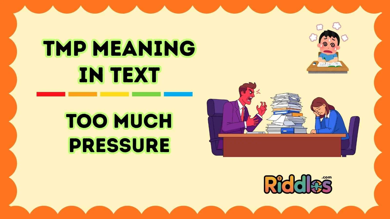 Answer: TMP usually stands for Too Much Pressure, indicating stress or overwhelm.