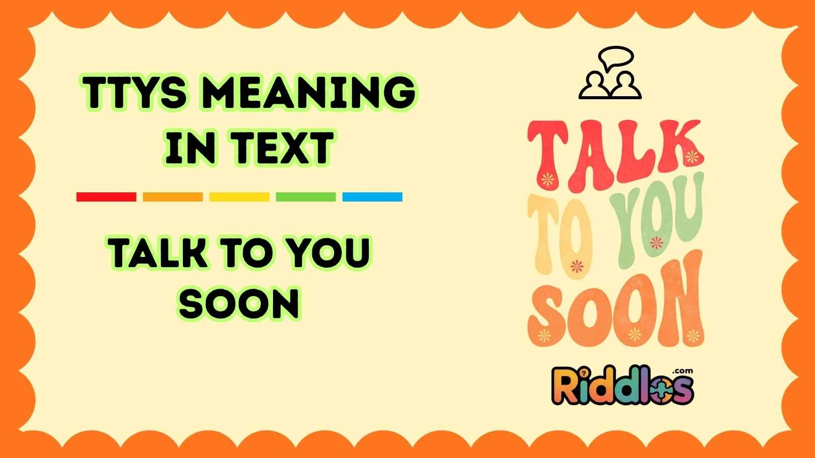TTYS stands for “Talk To You Soon.” It’s a common chat sign-off used when you’re ending a conversation but expect to reconnect later.